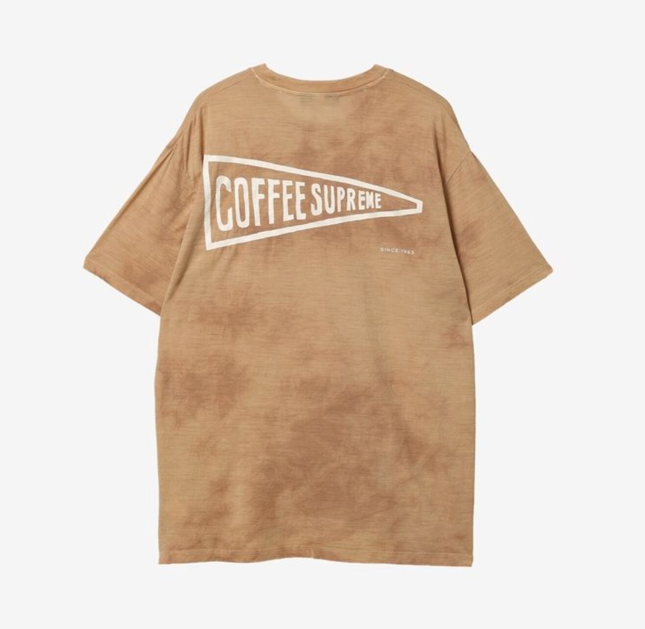 Coffee Supremeのアイスドリンクから着想を得た2カラーで登場。コーヒーかすで染めた深みのあるブラウンの COLD BREW と、コーヒーとミルクが混ざり合う様子をタイダイ風に表現した NAUGHTY MILK。胸ポケットにはメニュー名+“by icebreaker”を、背面にはCoffee Supremeの大きなロゴをあしらったデザインです。