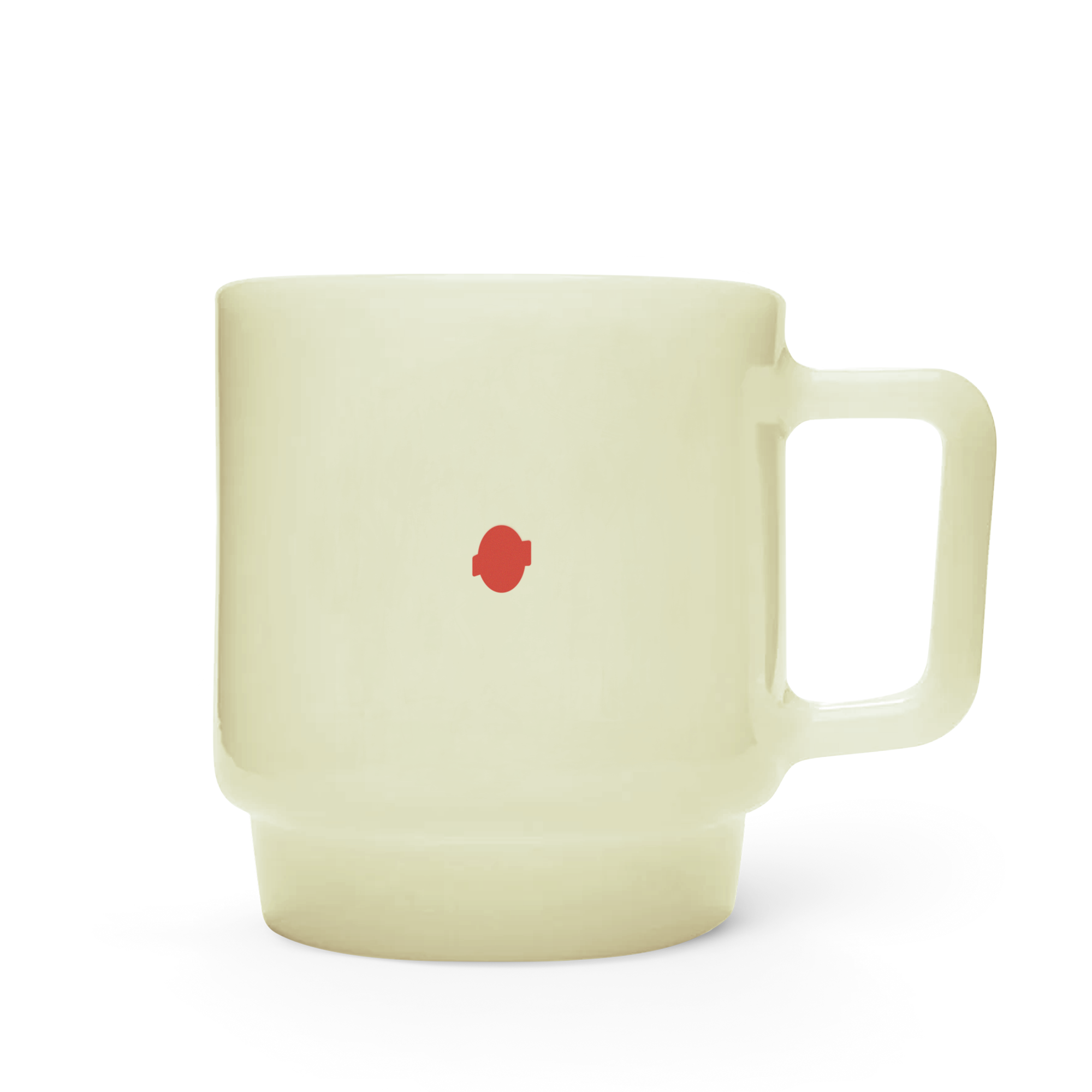 東北で一つ一つ手作りされた温かみのあるアイボリーのオールドミルクガラスマグ。
