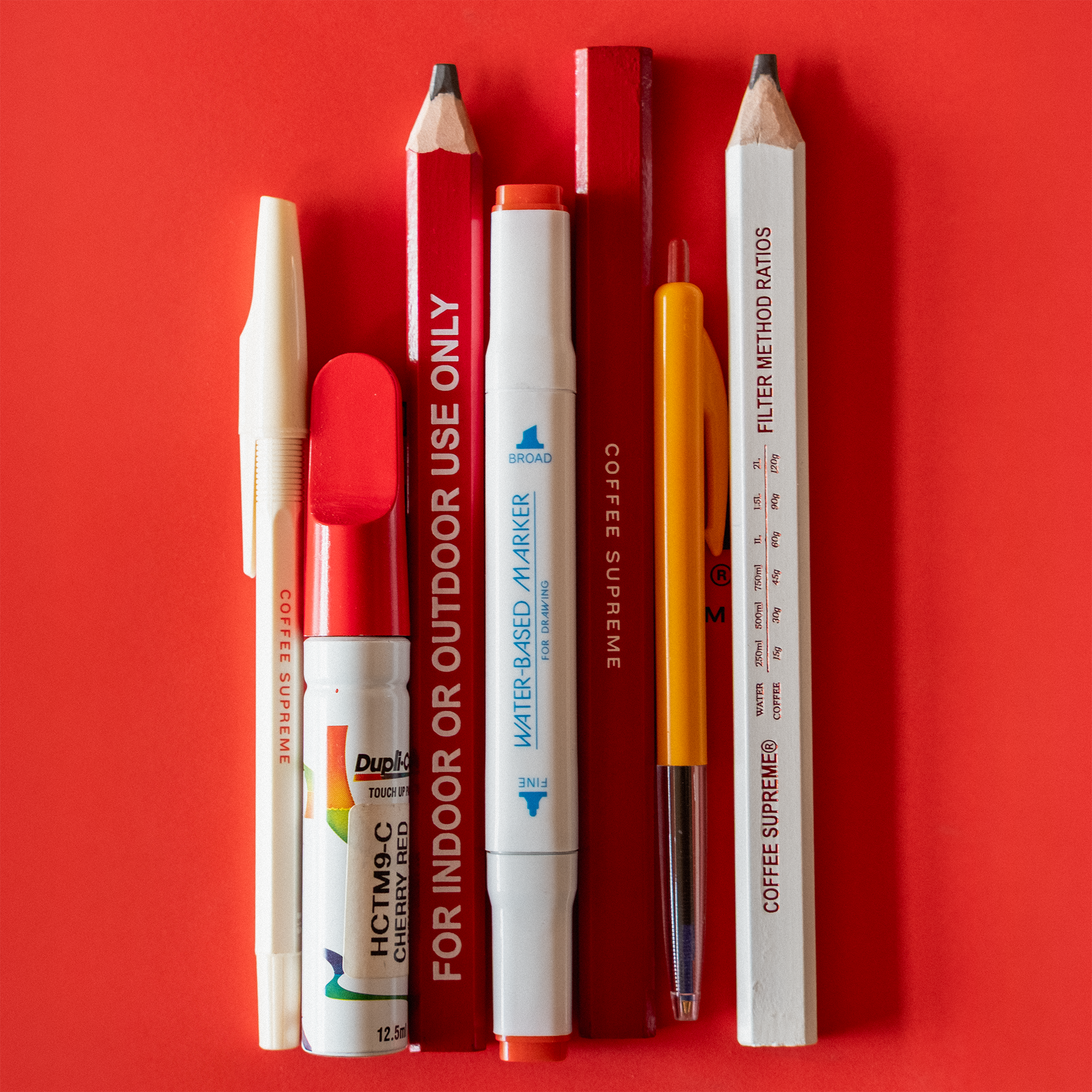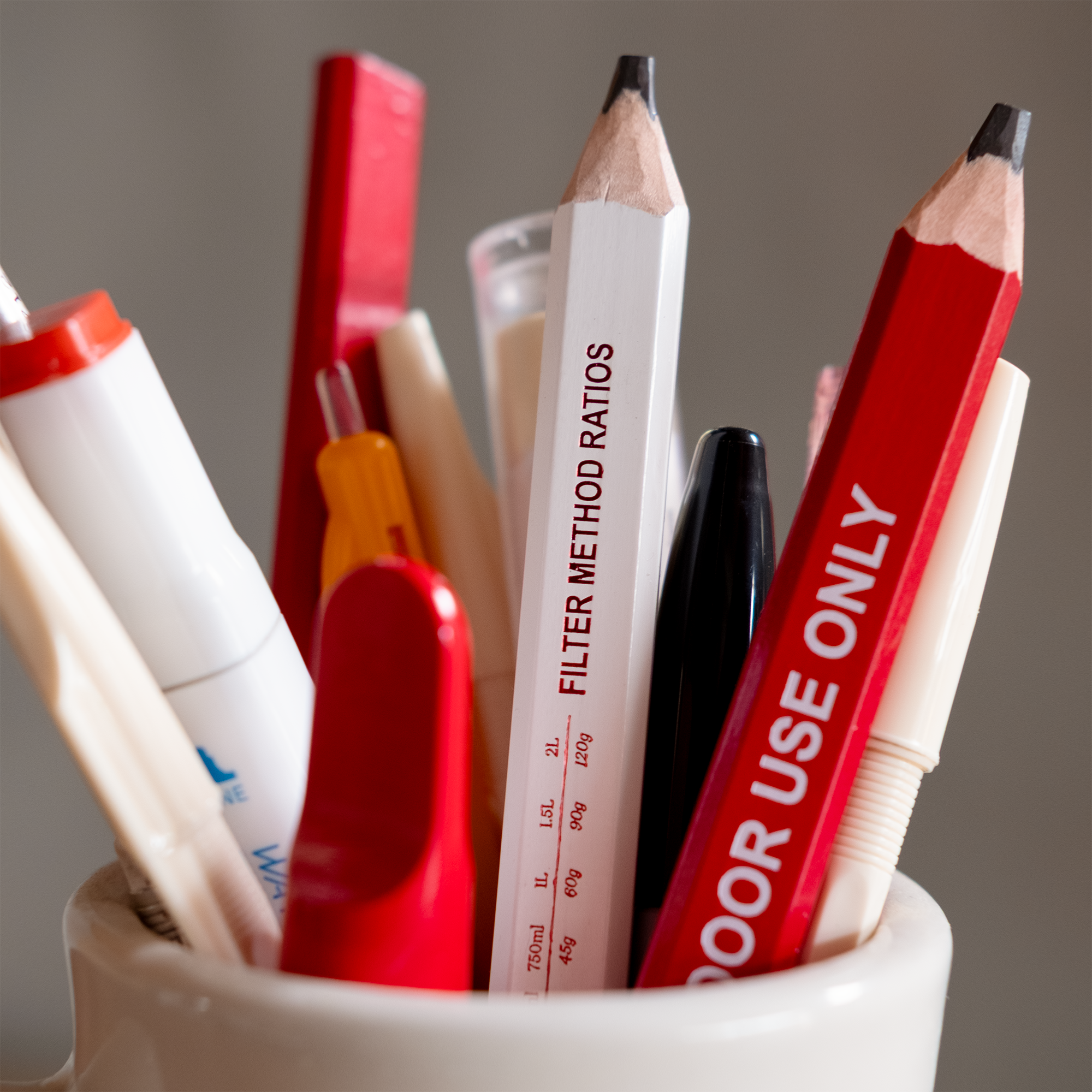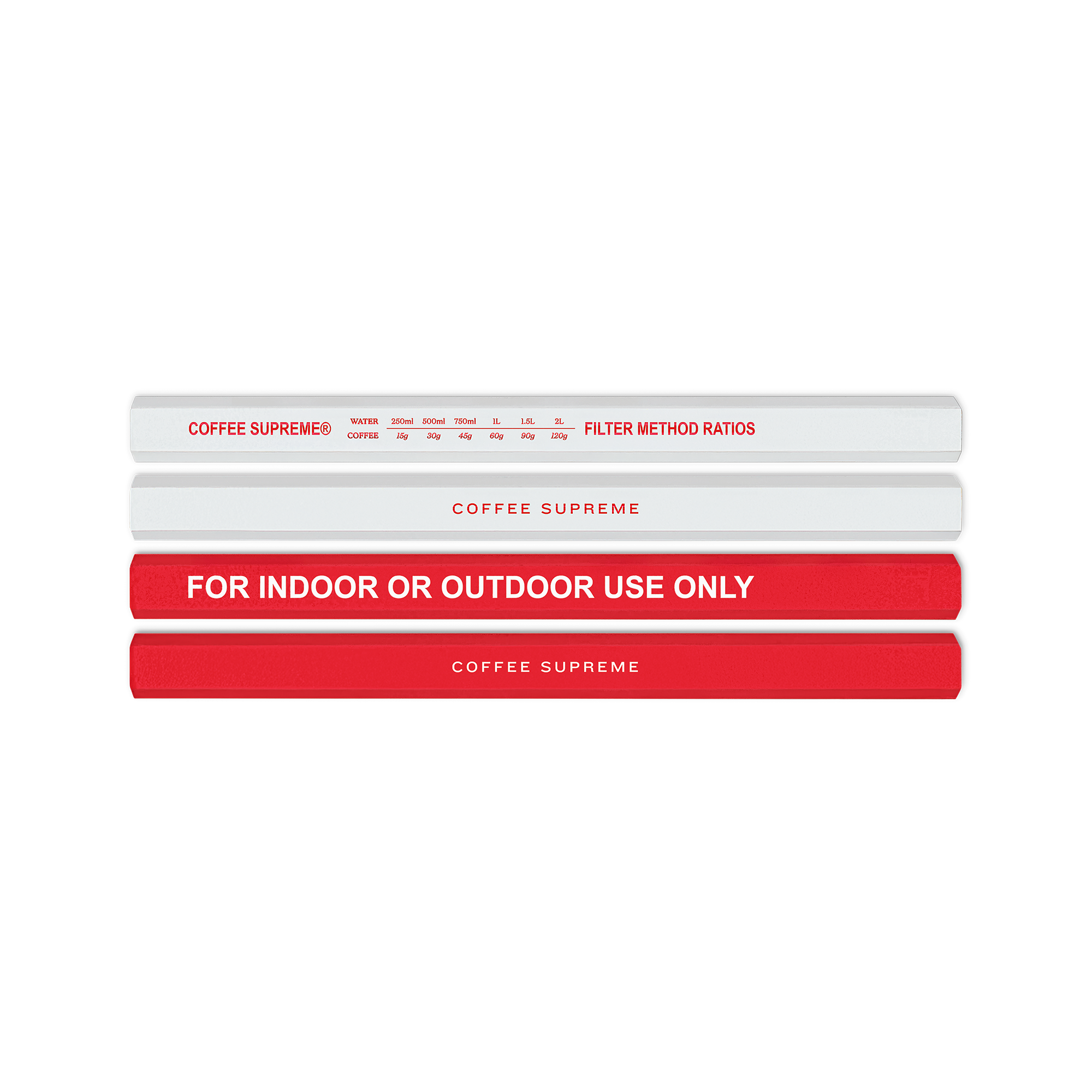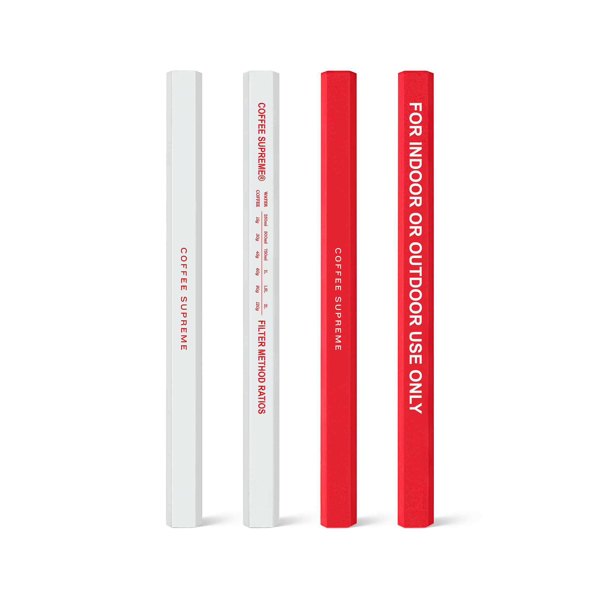 二度計って、一度淹れる。そんなバリスタのための、転がりにくくて、実用的で、タフな鉛筆の紅白1本ずつのセットです。