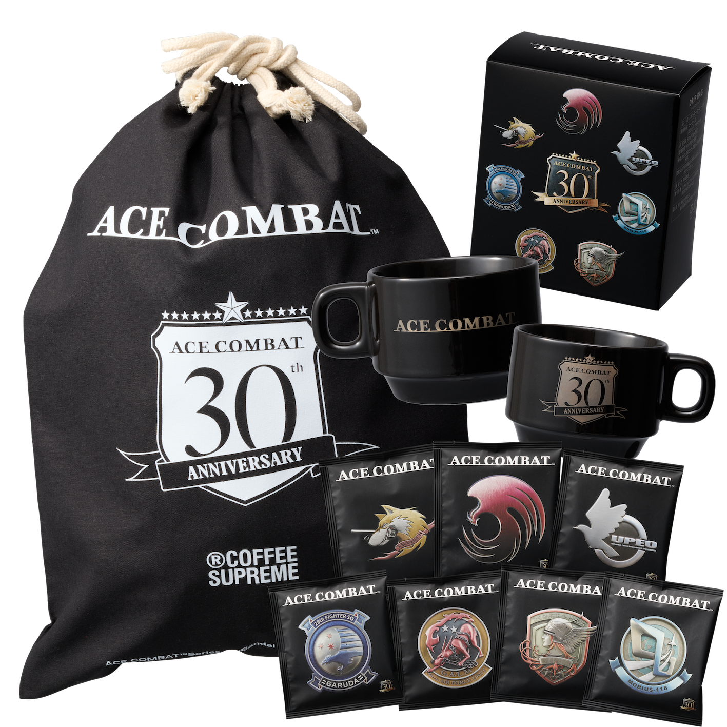 Ace Combatシリーズ30周年を記念して、Coffee Supreme Japanから限定コラボレーショングッズが発売!シリーズエンブレム7種のドリップコーヒーとシルバー印刷のスペシャルマグカップで